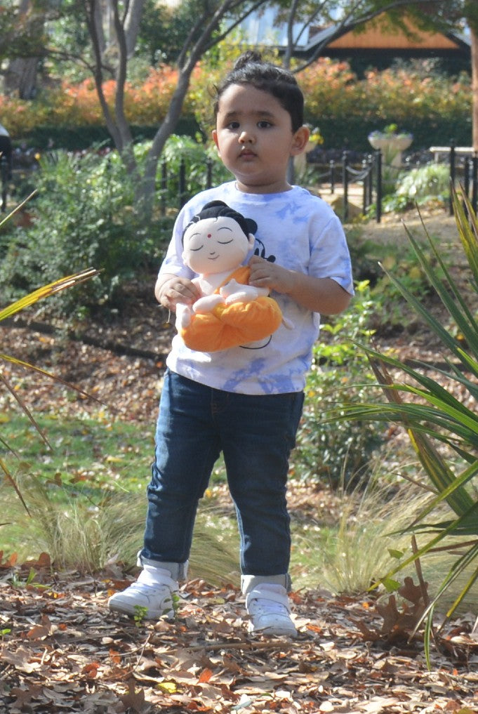 This 10 inch Little Buddha is not only cute and adorable but it is very calm and peaceful to look at. It is a perfect huggable sized plush in a sitting position of Shakyamuni Buddha. It softly sings 3 popular mantras when you press the button on its left hand that rests on its lap. It is a fun, interactive and educational plush that you and your little one will love. The mantras that you hear are actually recited by little monks and nuns from holy monasteries in Nepal. Part of the profit will be contributed to the little monks and nuns for their education.