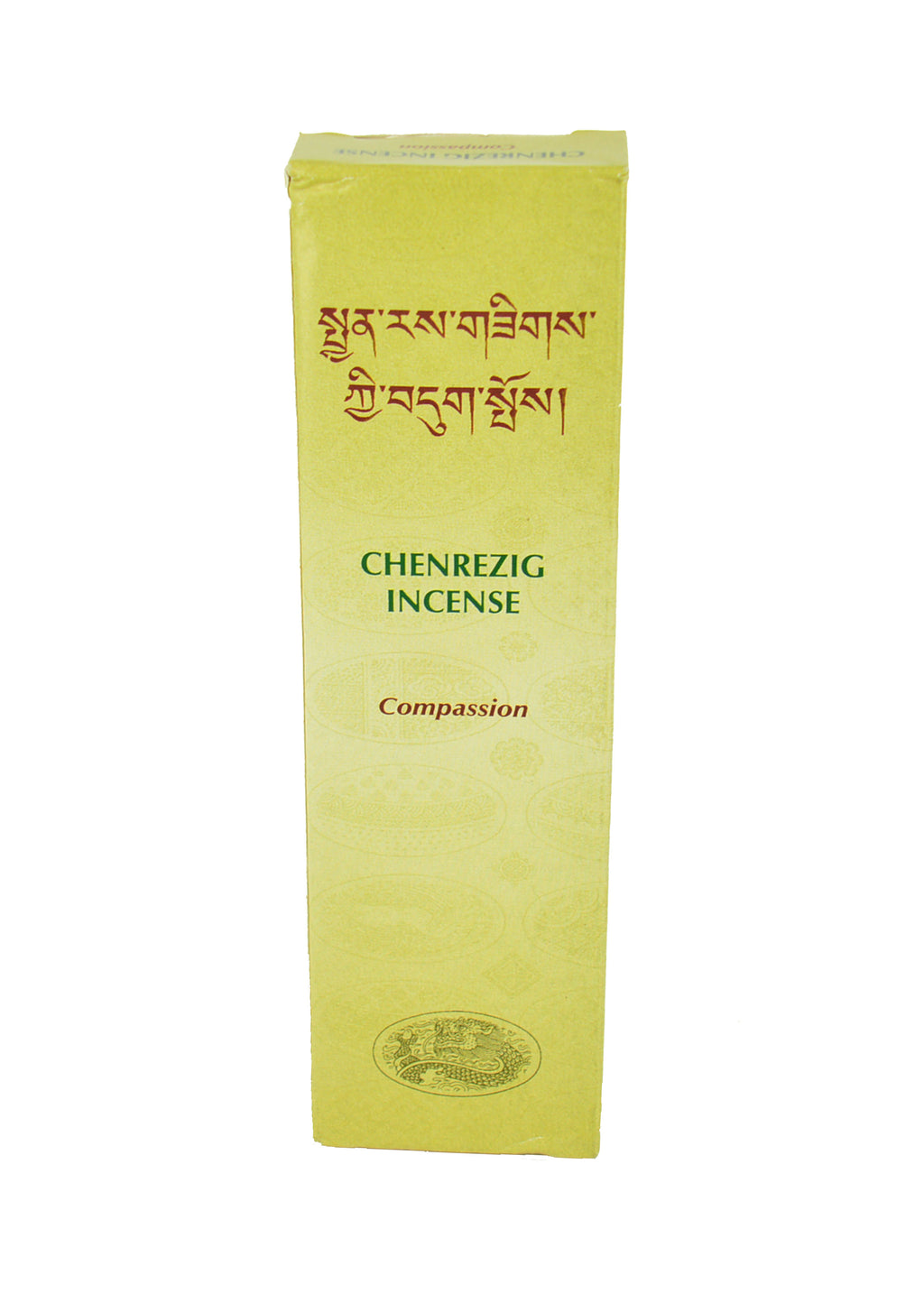 This packet contains 20 sticks of incense and includes a ceramic/wooden incense holder. Each stick of incense burns for approximately 65 minutes. This Chenrezig Incense is 6.3 Inches tall and 1.75 Inches wide. This Chenrezig Tibetan incense is specially made for use as an offering to the Buddha of Compassion. I helps us to increase our power to attain love and compassion and the delicate fragnance creates a peaceful atmosphere and stimulates a feeling of wellbeing.